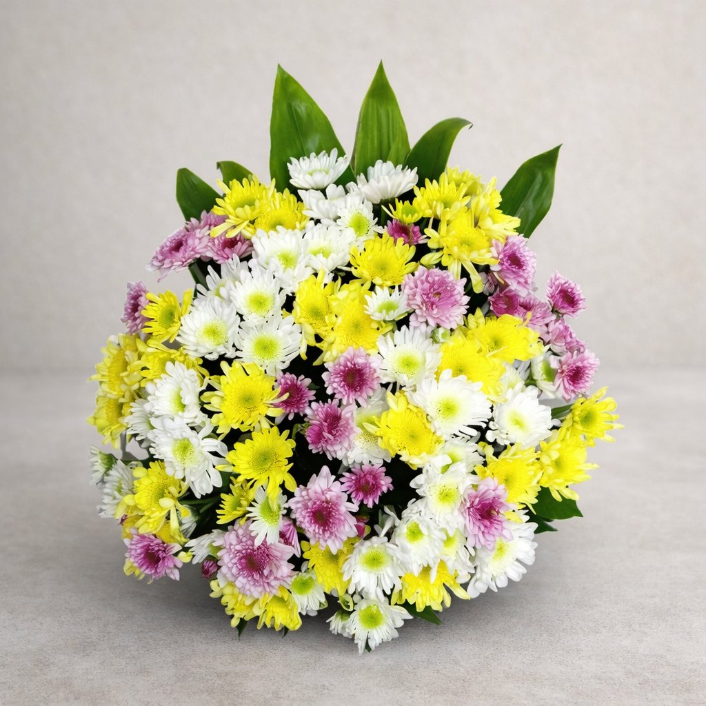 Mixed Chrysanthemum Casket Flower Set (Yellow, White & Violet)
